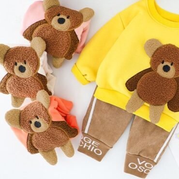 طقم ولادي يتكون من بلوفر بأكمام طويلة وبنطلون نمط دب ثلاثي الأبعاد للأولاد الصغار