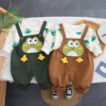 طقم ولادي يتكون من فنيلا بأكمام طويلة وبنطلون شيال بنمط لطيف للأولاد الصغار