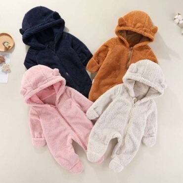 أفرول بأكمام طويلة مع غطاء للرأس مثالي للأجواء الباردة للأطفال الرضع