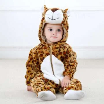 أفرول شتوي بأكمام طويلة مع غطاء للرأس نمط نمري للأطفل الرضع