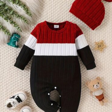 أفرول بأكمام طويلة بألوان متناسقة مع قبعة للأطفال الرضع