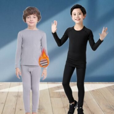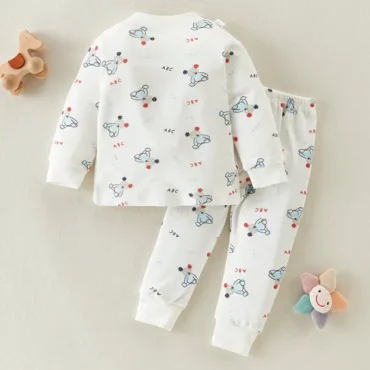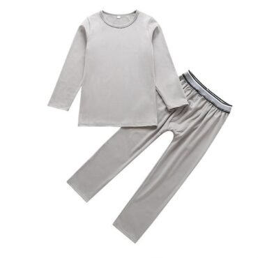 طقم بيجاما مبطن مكون من فنيلا بأكمام طويلة وسروال ناعم ودافئ للأولاد