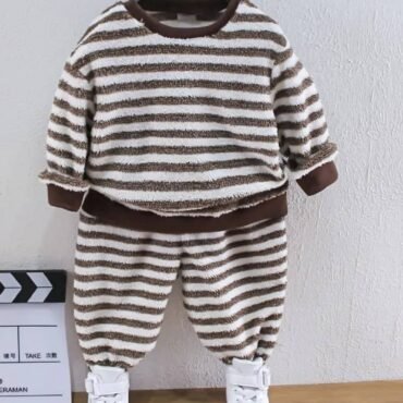 طقم بيجاما شتوي مخطط مكون من قطعتين