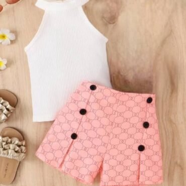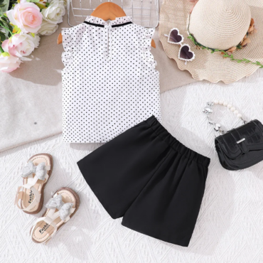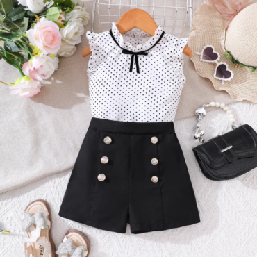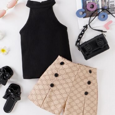 طقم بناتي أنيق مكون من بلوزة بدون أكمام وشورت بتصميم أنيق وراقي