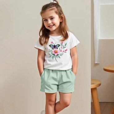 طقم بناتي مكون من قطعتين تيشيرت+شورت