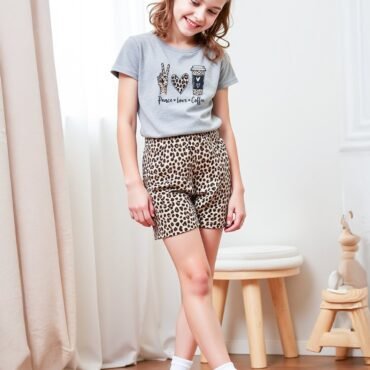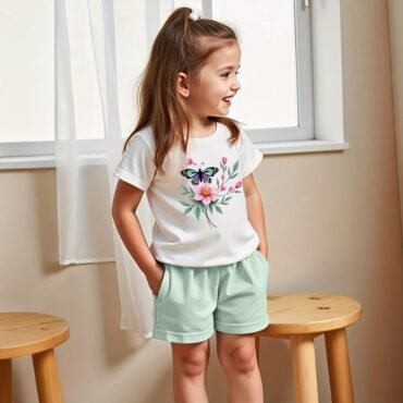 طقم بناتي يتكون من قطعتين بلوزة بأكمام قصيرة وشورت
