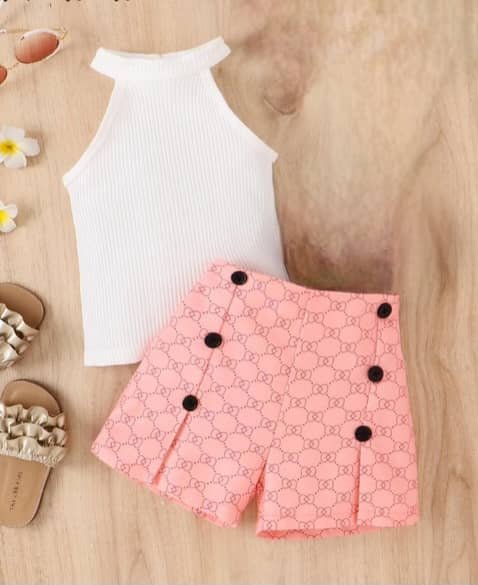 طقم بناتي شورت مكون من 2 قطع بلوزة وشورت