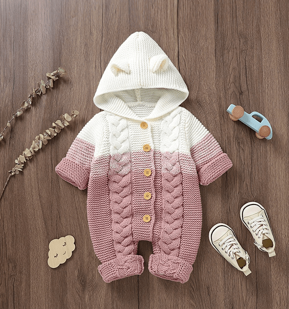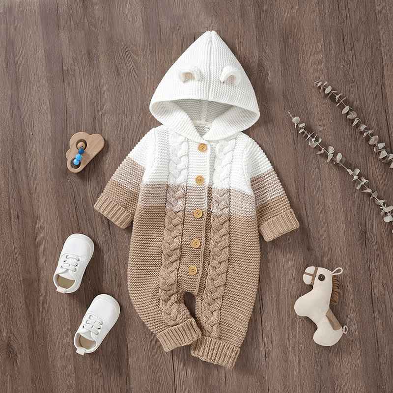 أفرول شتوي محبوك مع قبعة بتصميم جميل
