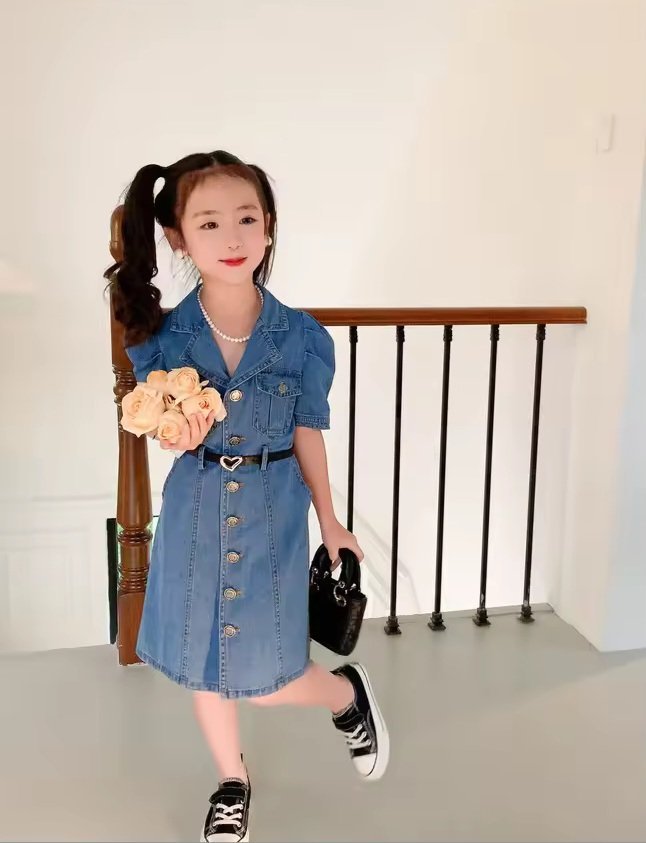 فستان بأكمام قصيرة من الجينز الفاخر للفتيات الأنيقات