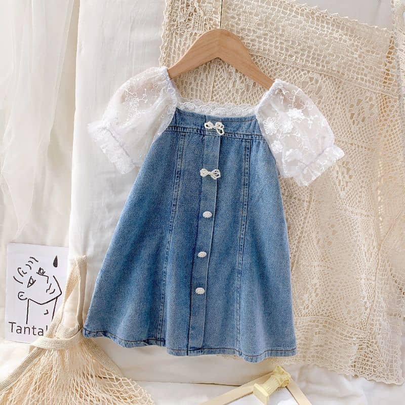 فستان الموضة من الجينز الفاخر بأكمام قصيرة