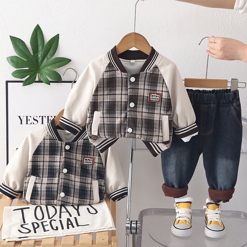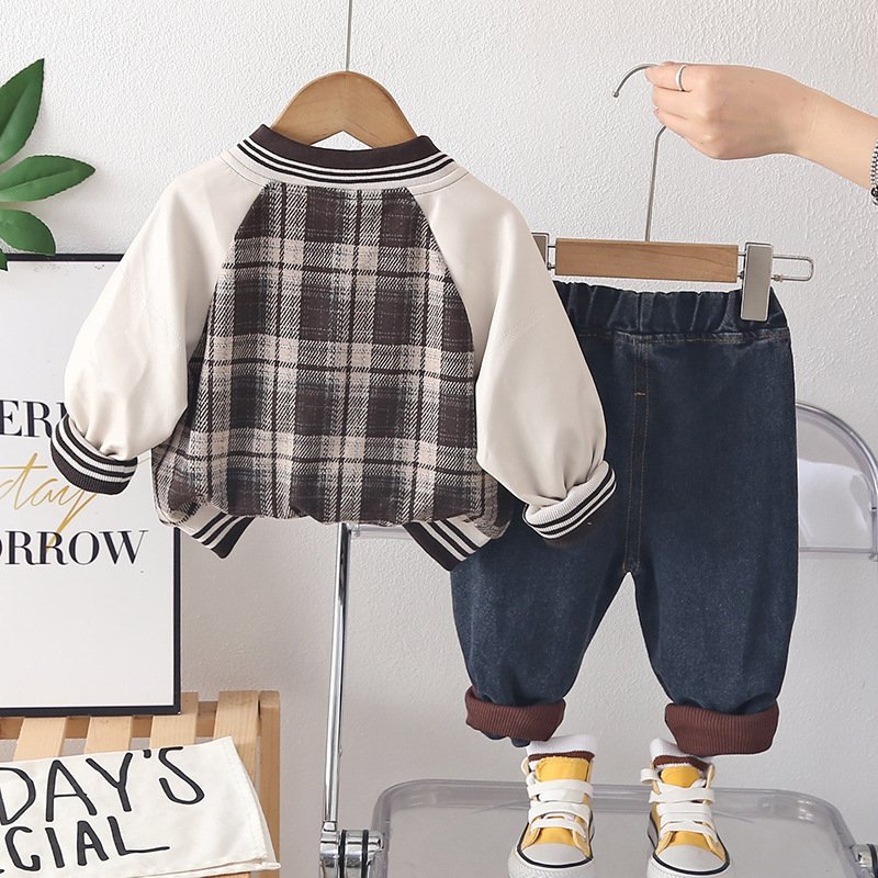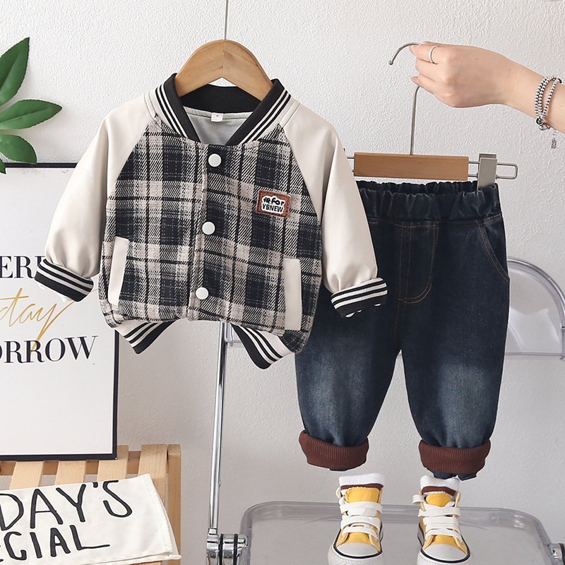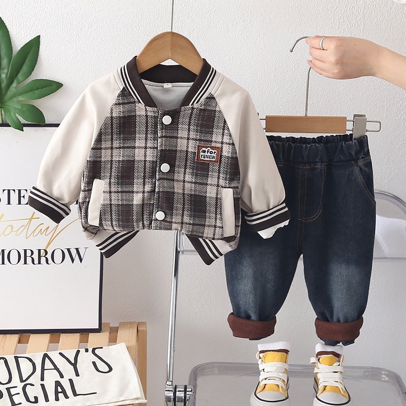 طقم ولادي يتكون من جاكت بأكمام طويلة وبنطلون للأولاد الصغار