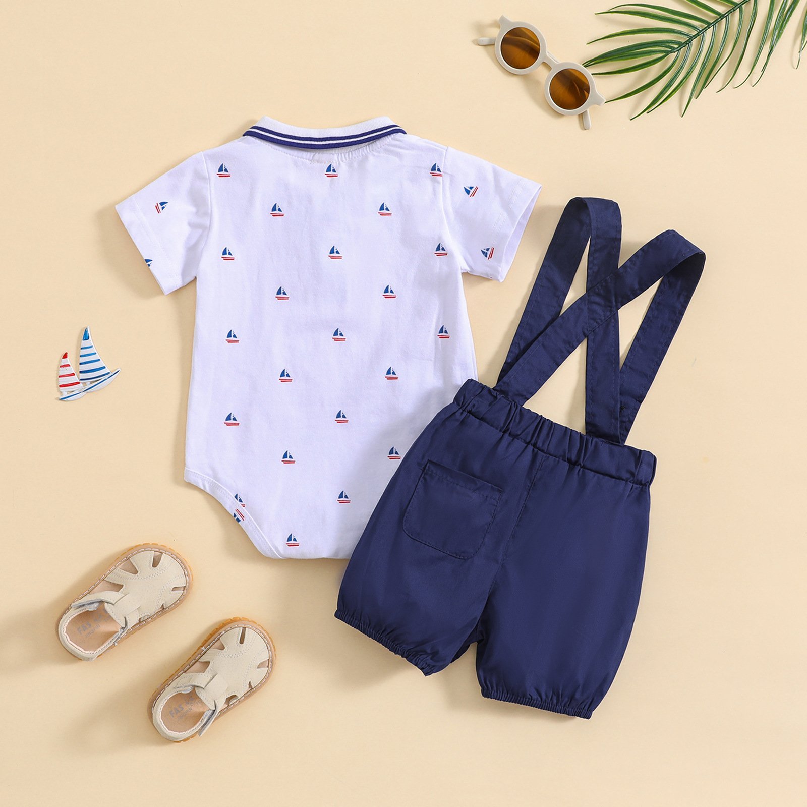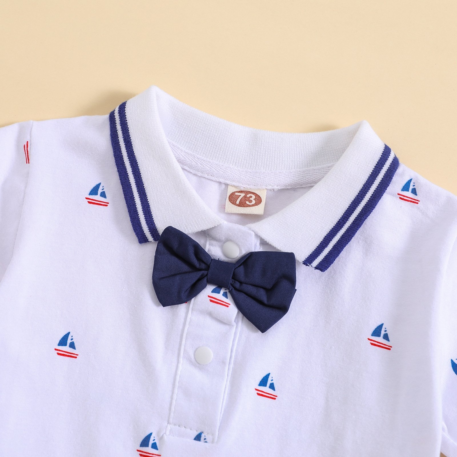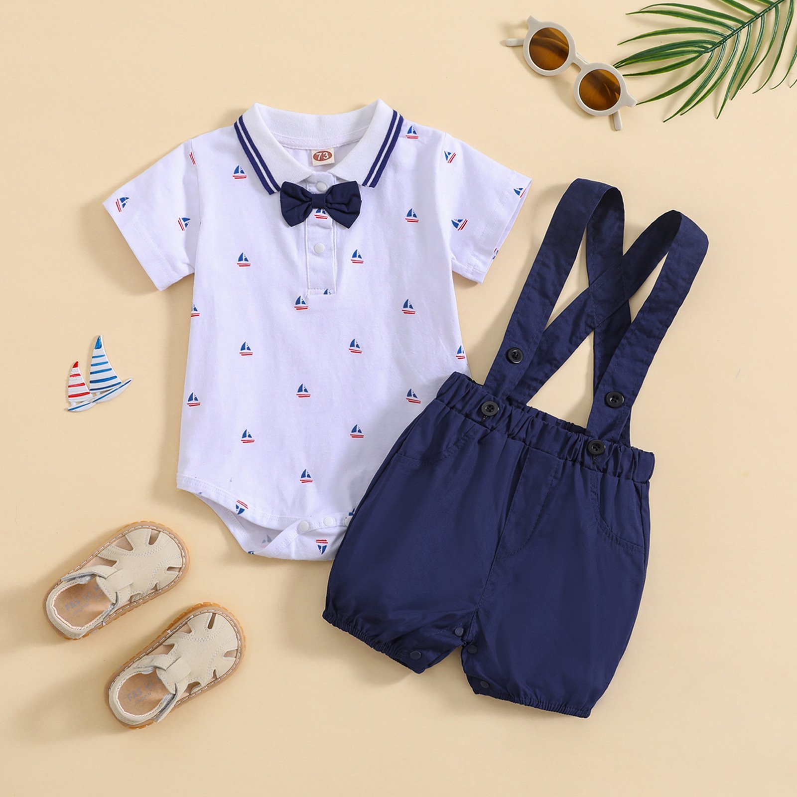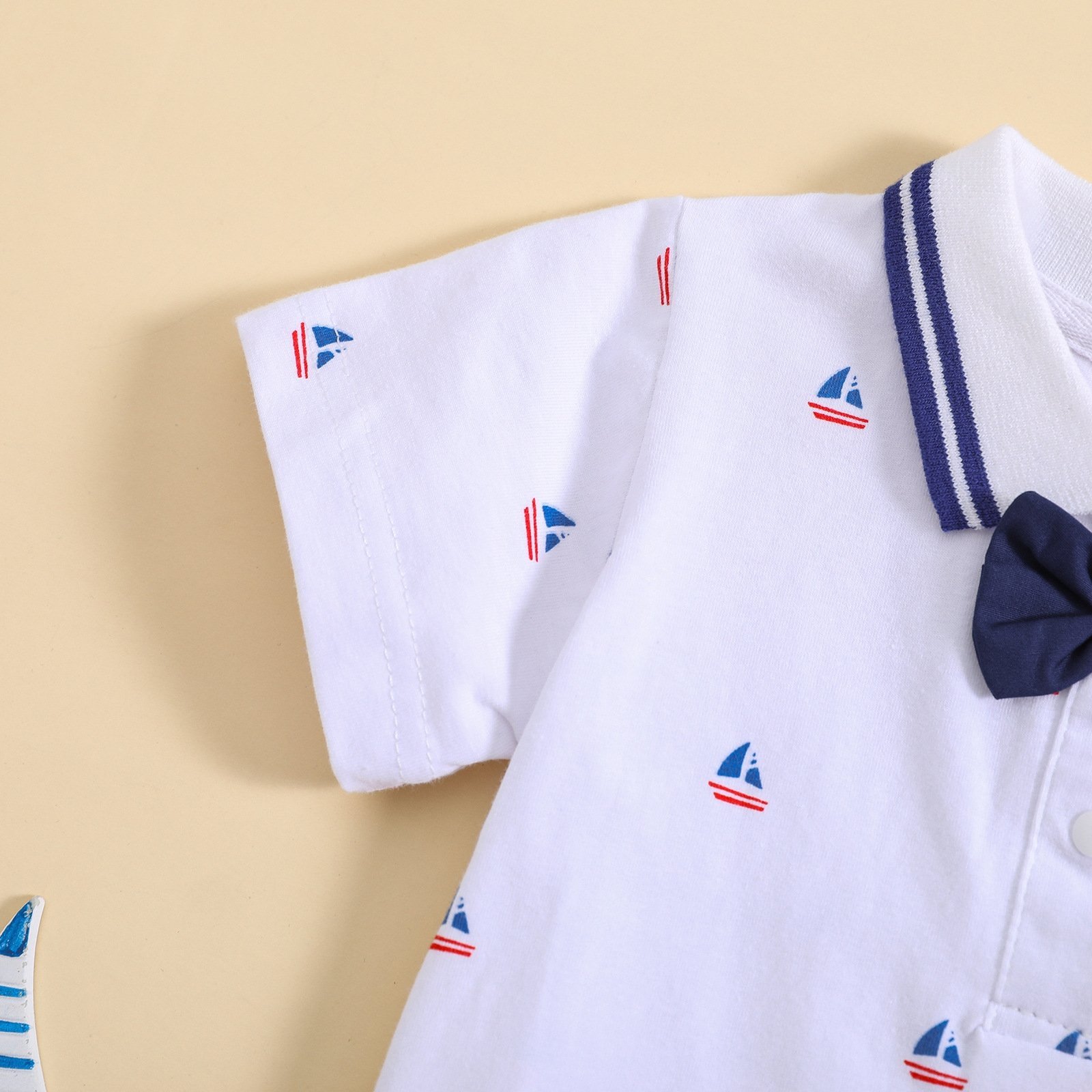 طقم مواليد ولادي يتكون من قطعتين بوديسوت بأكمام قصيرة مزين بربطة عنق وشورت على شيال