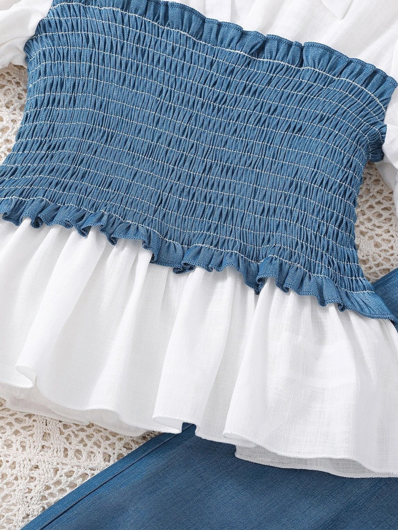 طقم بناتي يتكون من قطعتين بلوزة بأكمام طويلة وبنطلون بتصميم أنيق وحديث