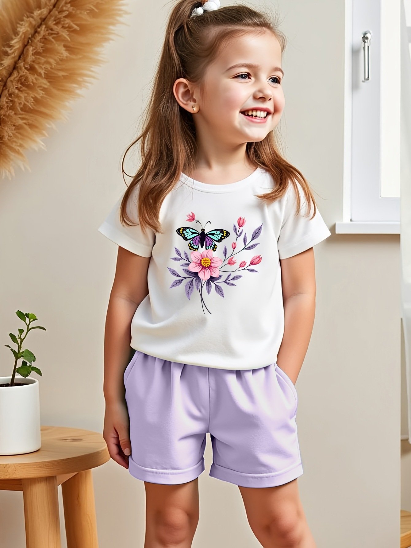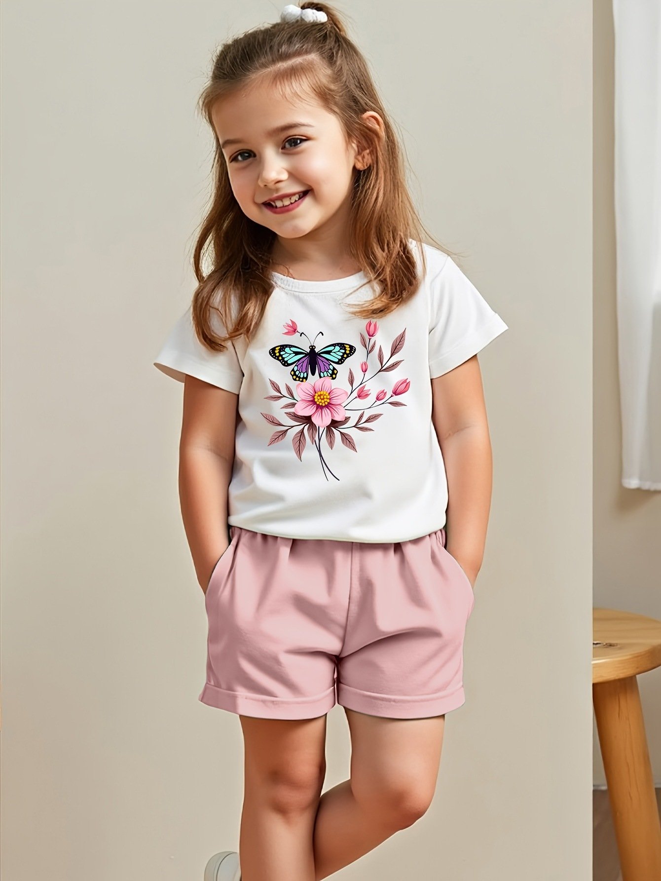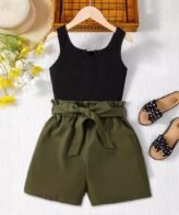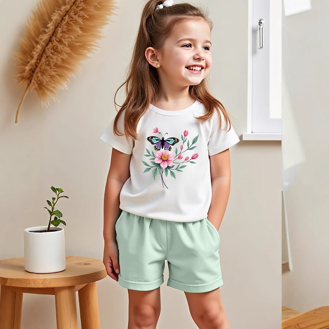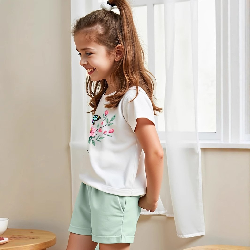 طقم بناتي يتكون من قطعتين بلوزة بأكمام قصيرة وشورت