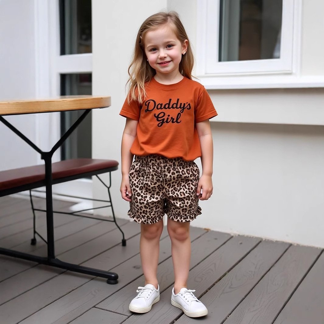 طقم بناتي يتكون من قطعتين بلوزة بأكمام قصيرة وشورت