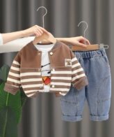 طقم ولادي يتكون من فنيلا بدون أكمام و شميز بأكمام طويلة تتميز بسترة ملتصقة وبنطلون نمط دب