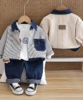 طقم ولادي يتكون من قطعتين شميز بأكمام طويلة وبنطلون جينز