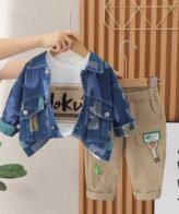 طقم ولادي يتكون من ثلاث قطع فنيلا بأكمام طويلة وسترة بأكمام طويلة وبنطلون