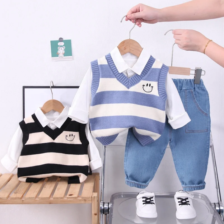 طقم ولادي مكون من شميز بأكمام وفنيلة بدون اكمام وبنطلون جنيز