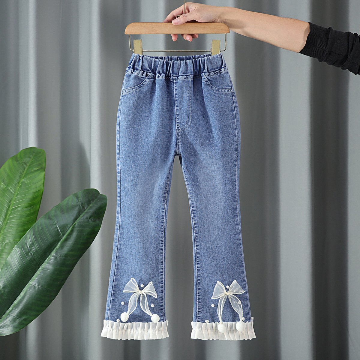 بنطلون بناتي جينز بتصميم جذاب مكشكش من الاطراف