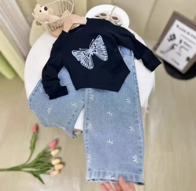 طقم بناتي مكون من بلوزة بأكمام طويله وبنطال جينز بتصميم عصري حديث