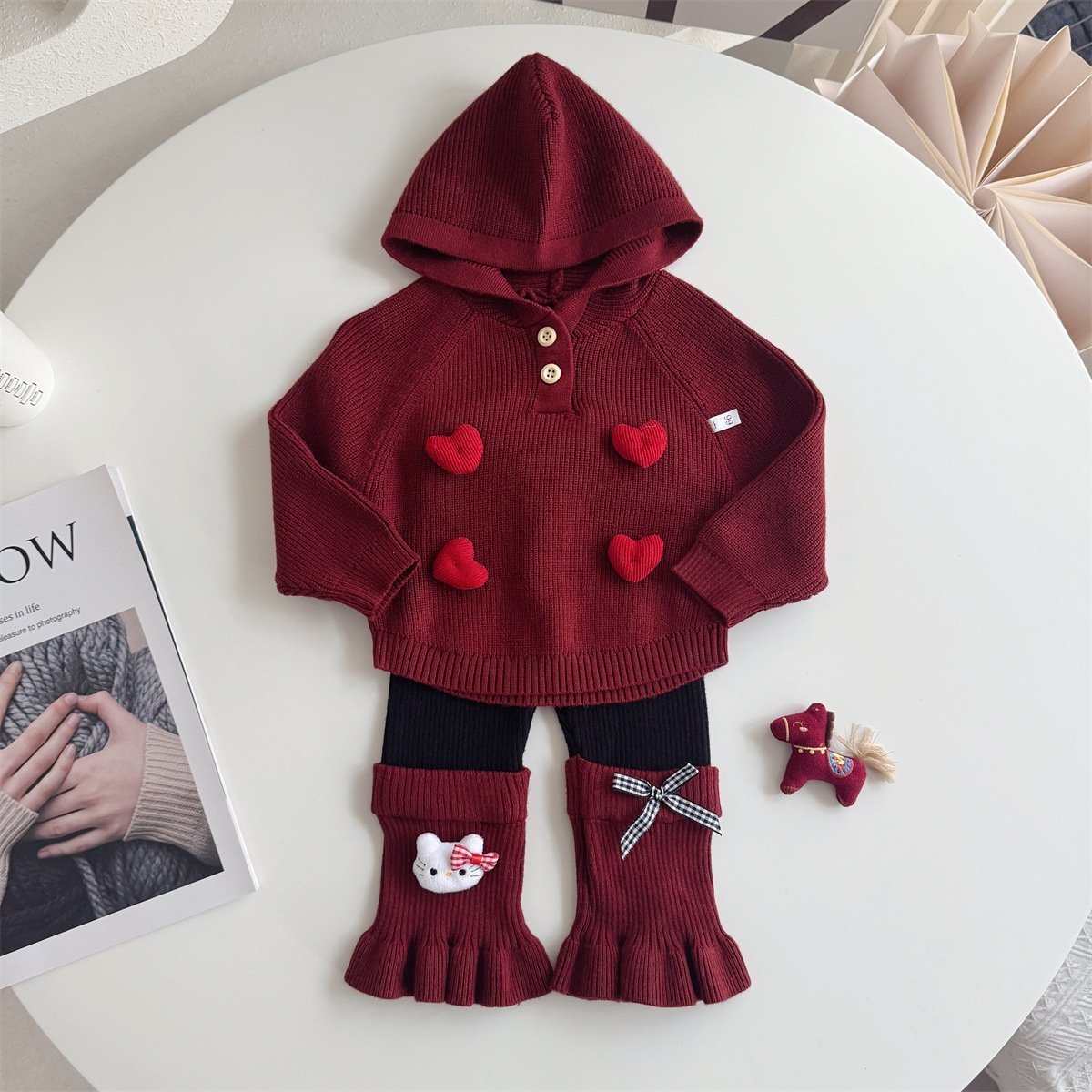طقم بناتي راقي يتكون من هودي جميل وبنطلون بتصميم فاخر وأنيق للبنات الرضع