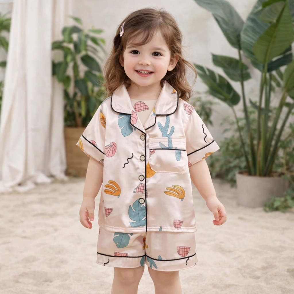 طقم بيجاما بناتي مكون من شميز بأكمام قصيره وشورت بتصميم جذاب