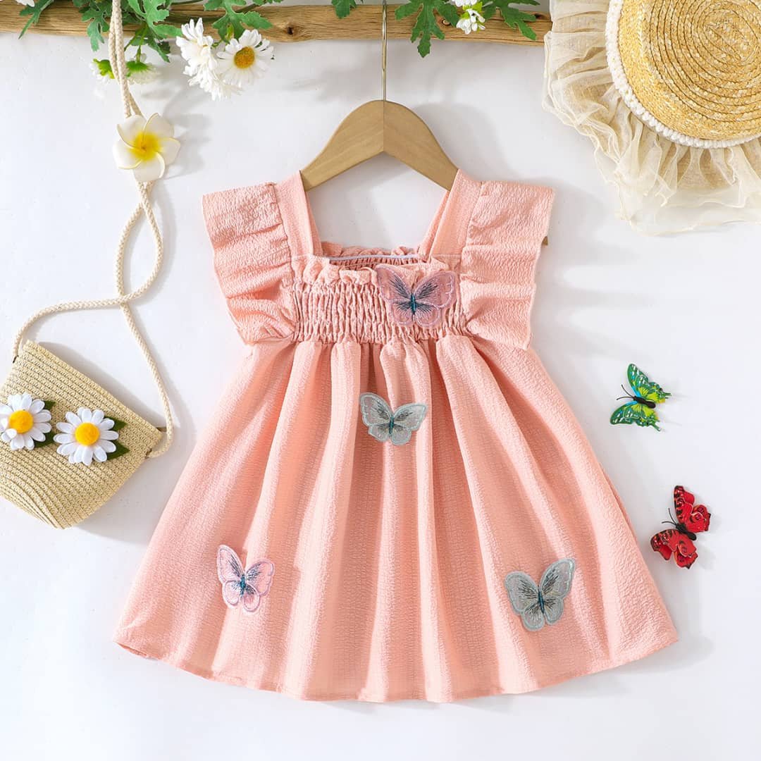 فستان بناتي مزين بفراشات