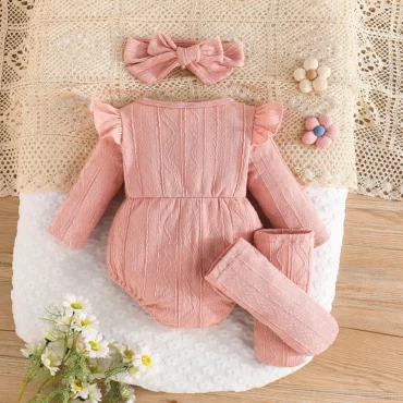 طقم بناتي أنيق مكون 3قطع رومبير مع جوارب وربطة شعر بنمط الزهور